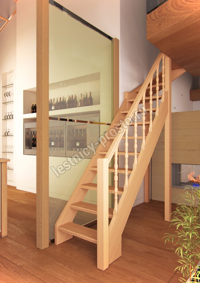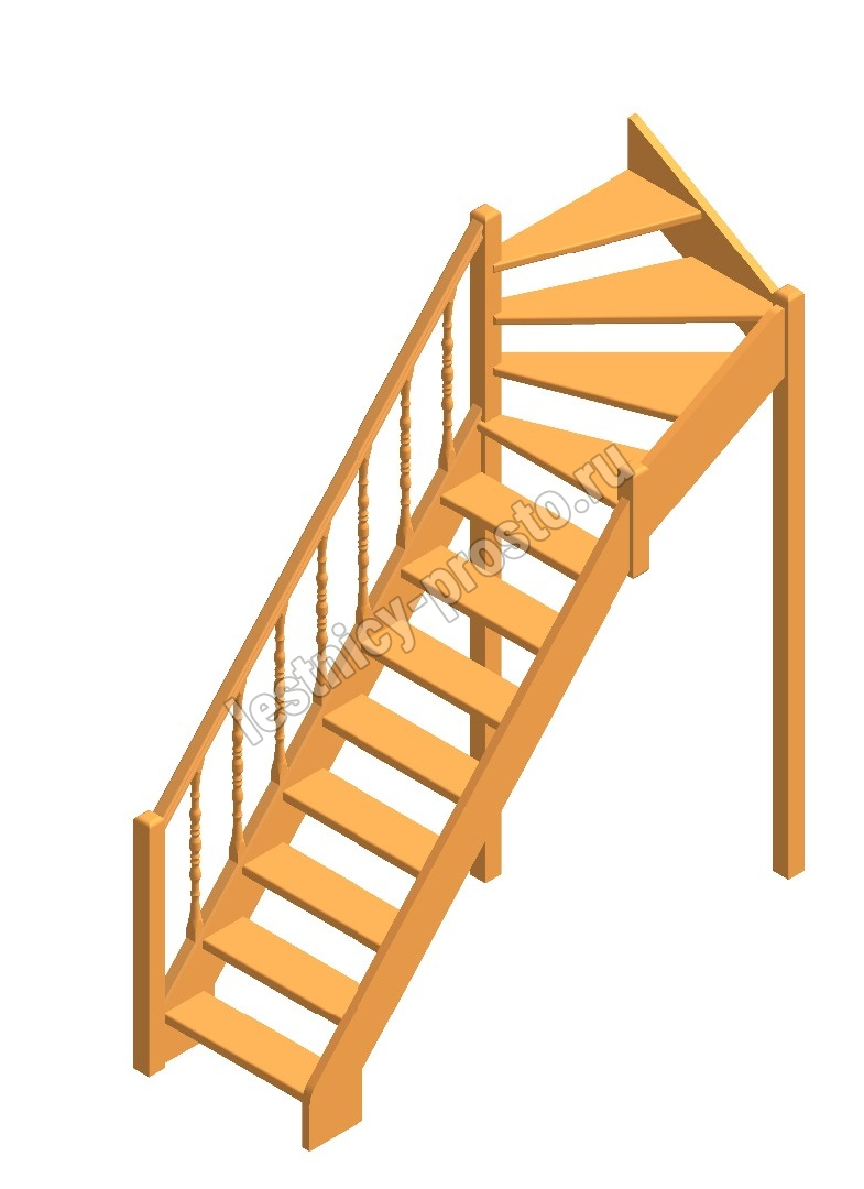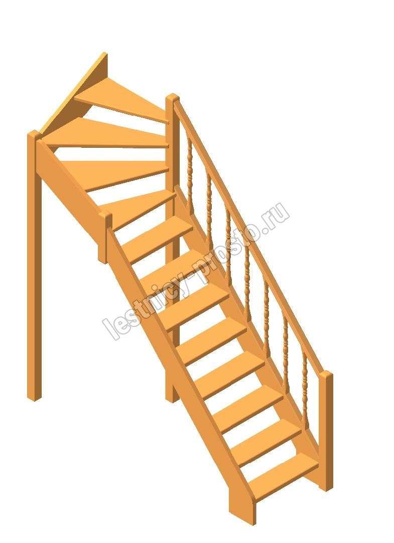 Деревянная межэтажная лестница Лес-715, Лиственница