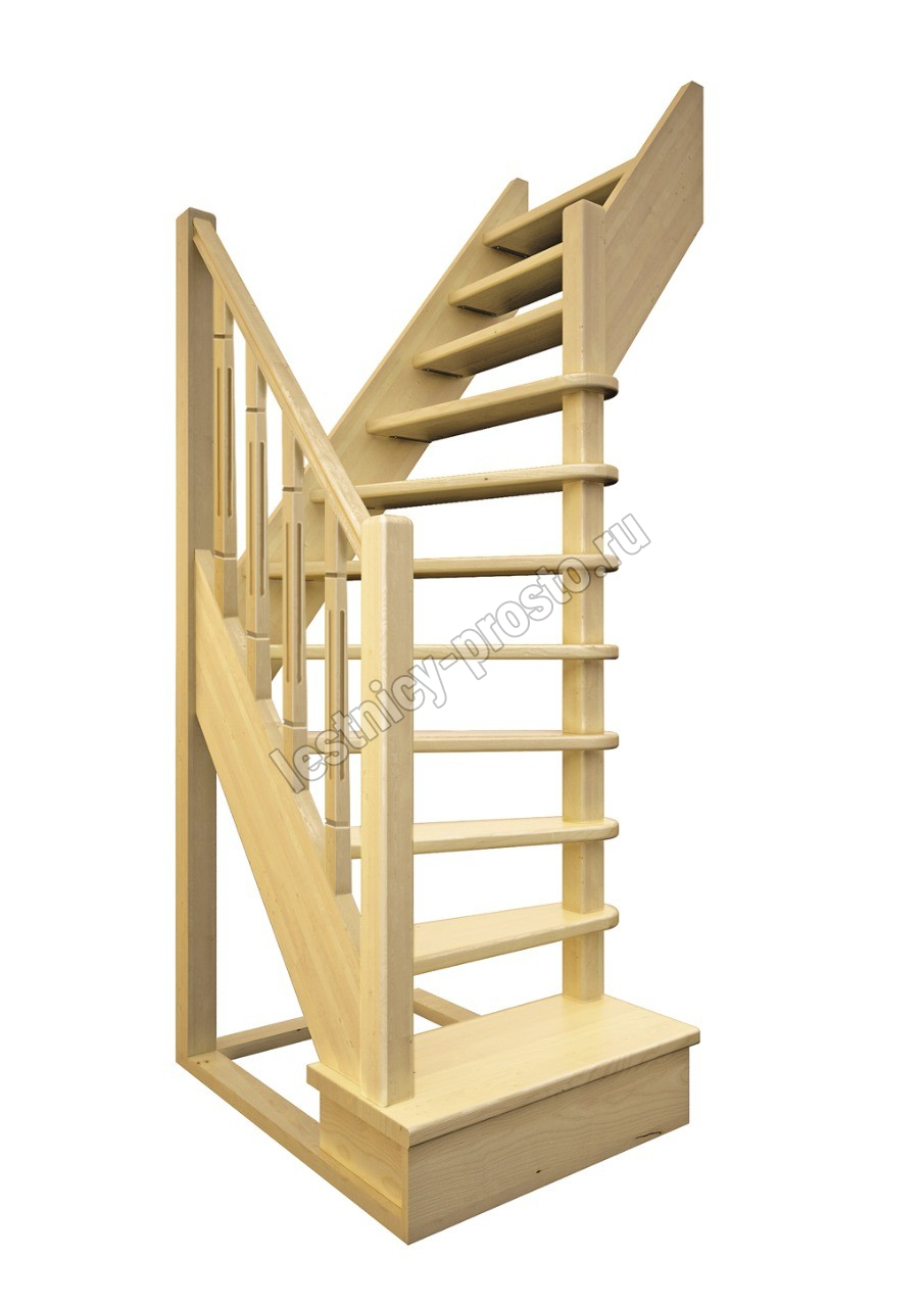 Деревянная межэтажная лестница ЛЕС-91 2700-2925 проем 1220-780, Сосна