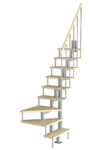 Базовый комплект включает в себя деревянные элементы лестницы и ограждения без какого-либо покрытия.