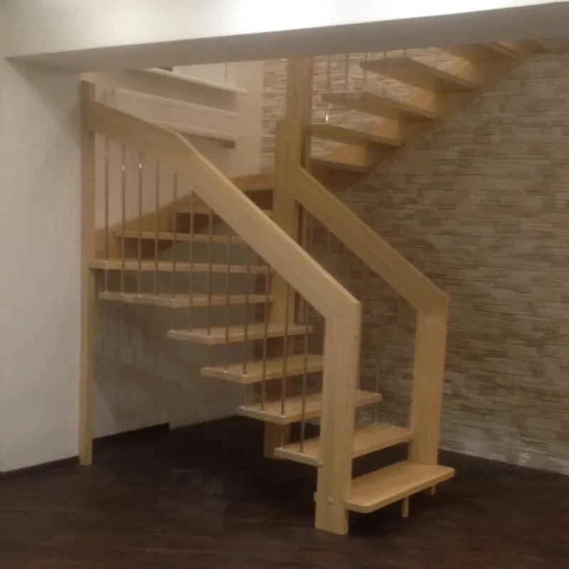 Надёжная современная лестница выполнена по немецкой технологии. Стоимость указана для лестницы с ограждением (с одной стороны); Поставляется в разобранном виде, в комплекте необходимый крепёж; Лестницу можно собрать самостоятельно; Так же, вы можете заказать услугу монтажа нашими специалистами; 4 вида породы дерева для изготовления лестницы: сосна, бук, ясень, дуб; возможна комбинированная лестница: из сосны (ступени бук, ясень, дуб); Деревянные элементы без какого-либо покрытия, отшлифованы, готовы к покраске. За дополнительную плату, вы можете изменить любые параметры, а именно: увеличить глубину ступени; увеличить ширину марша до 900 мм. и выше; заказать подступенки к лестнице; заказать отделку перекрытия (между 1-м и 2-м этажами); изготовить дополнительный промежуточный марш; заказать ограждение 2-го этажа; покраска в любой цвет или несколько цветов или покрытие защитными средствами; дополнение балясины из нержавеющей стали деревянными элементами; покраска балясин из нержавеющей стали порошковой краской в цвет RAL.