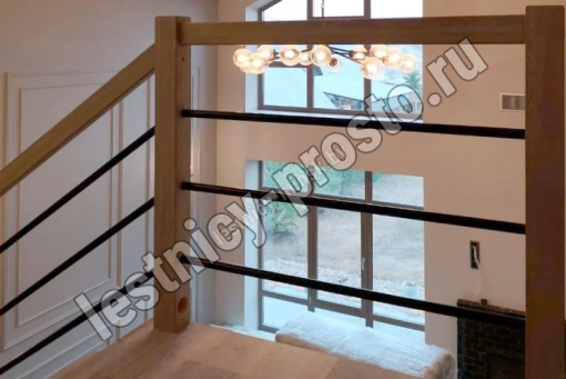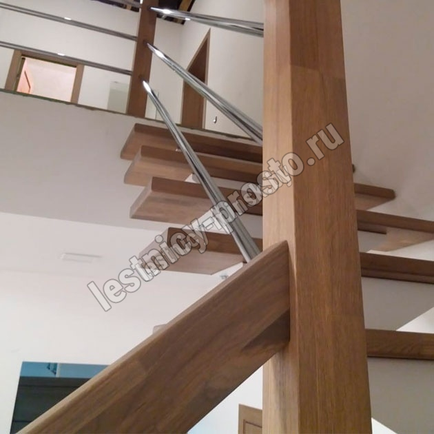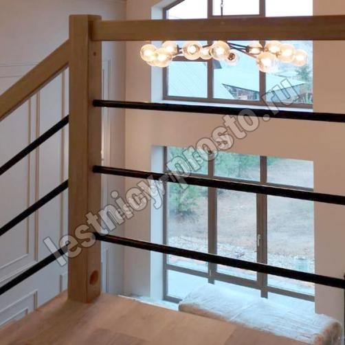В комплекте: 3 прямых деревянных столба без какого-либо покрытия и профильный поручень без покрытия, комплект из 3 ригелей из стали (окрашены в цвет каркаса или хром по желанию) диаметром 12 мм. , необходимая фурнитура.