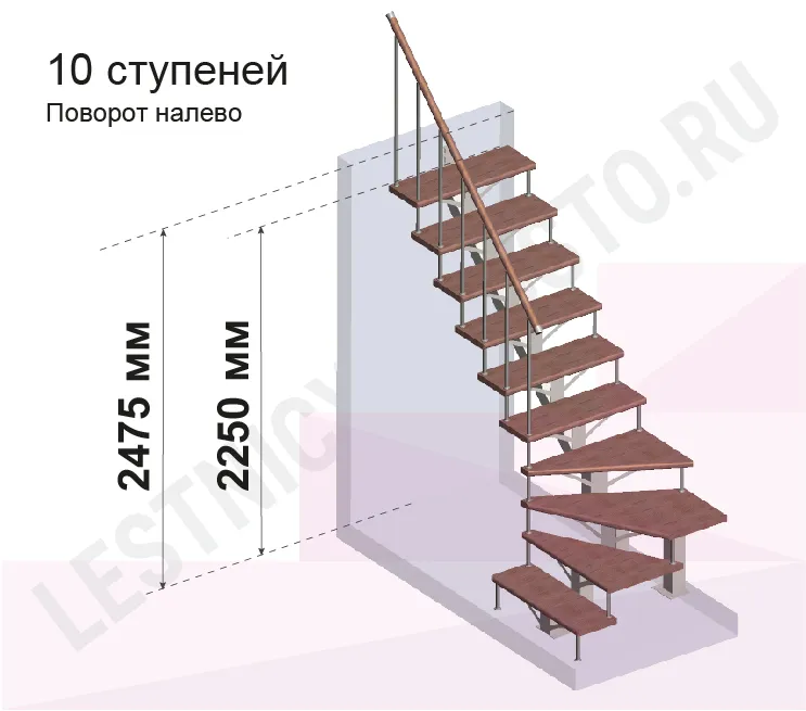 Лестница PROSTO MONO Г-образная h247.5 см, ступени лиственница