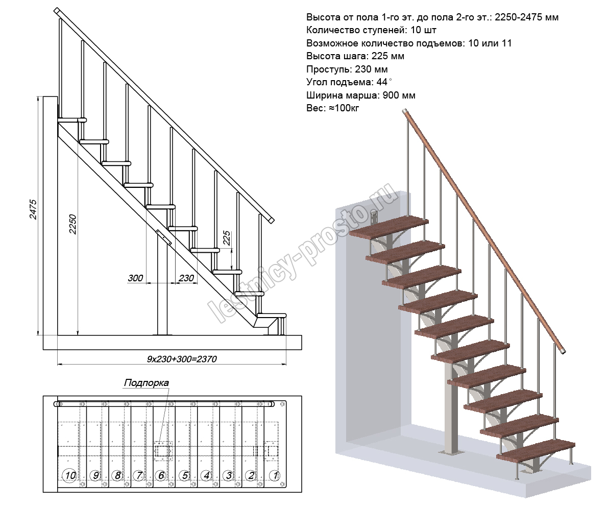 Высота лестницы 2250 - 2475 мм