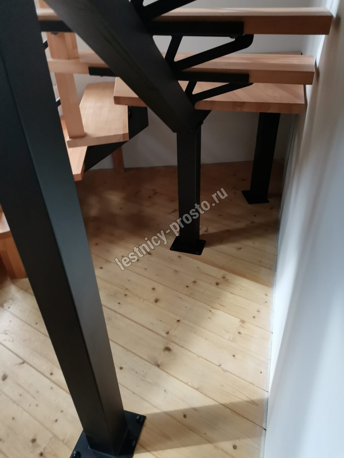 Конструкция представляет собой стальной монокосоур, на который крепятся ступени.