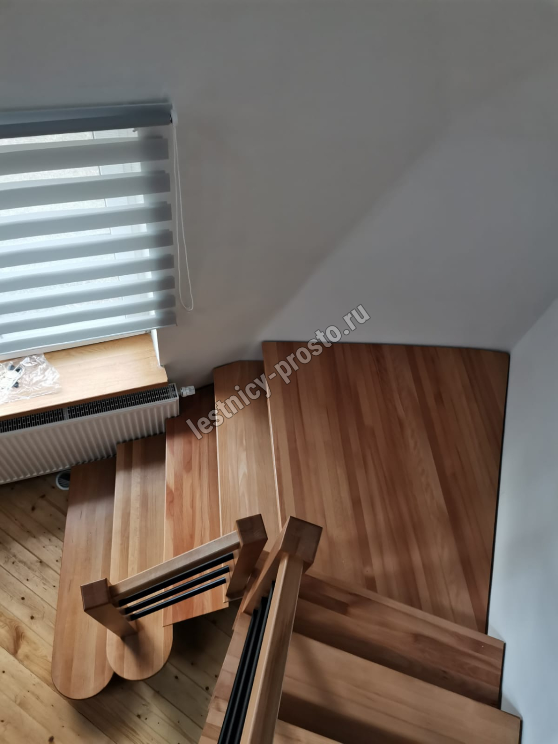 Поворот на 90° реализован посредством площадки, высота поворота определяется параметрами вашего помещения и размерами проёма.