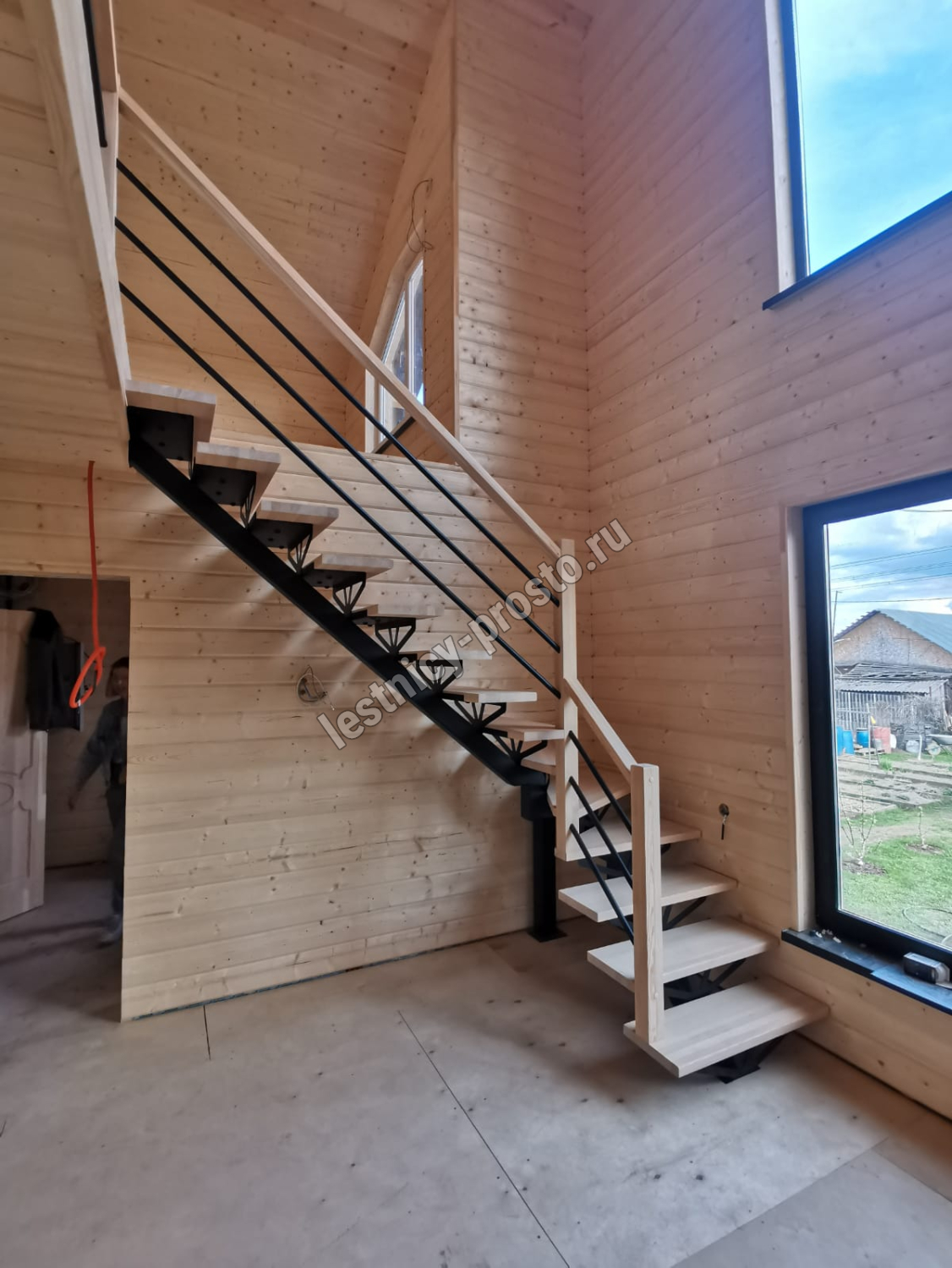 Лестница PROSTO MONO STEP TRINITY г-образная забежная, ступени берёза с ограждением