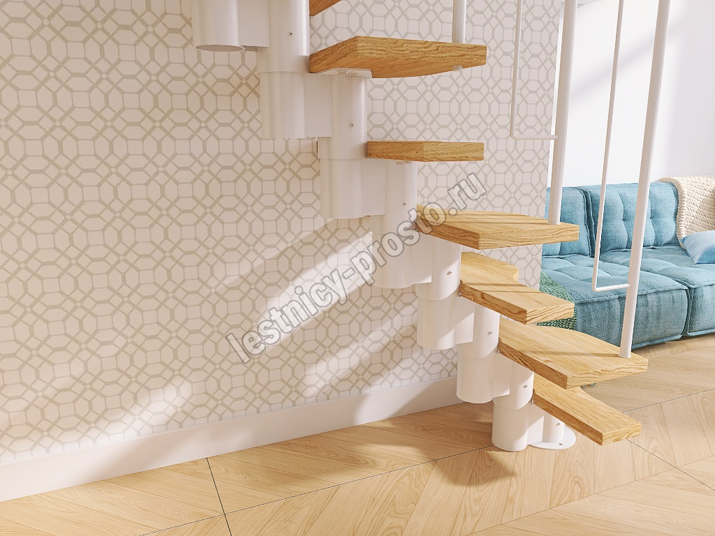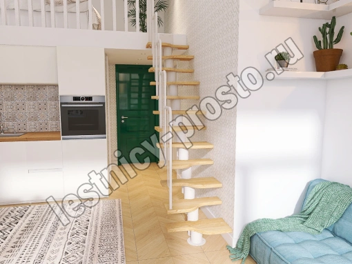 Лестница Prosto Urban White гусиный шаг 600 мм, h180-264 см (10 ступеней), ясень