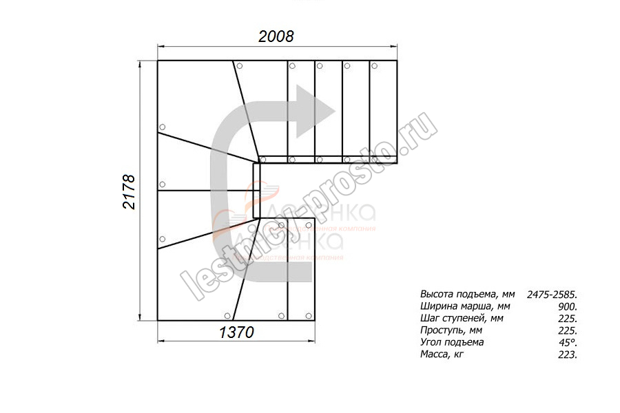 Высота шага 225 мм