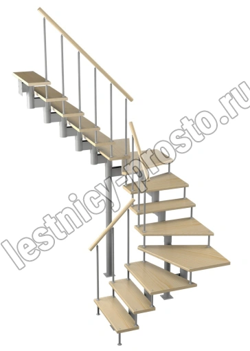 Модульная лестница Спринт 225 3150-3290, Серый, Лиственница, Нержавеющая сталь