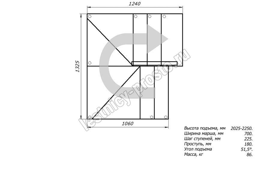 Высота лестницы 2025 - 2250 мм