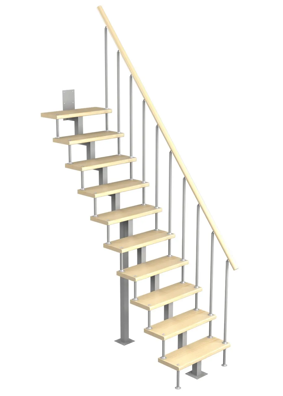 Модульная малогабаритная лестница Эксклюзив 2700-2925, Серый, Бук, Нержавеющая сталь