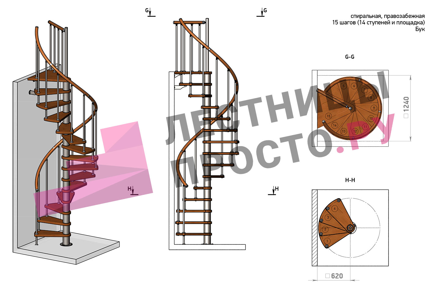 Винтовая лестница Prosto Spiral Black D120см, h325.7-369.8 см, бук