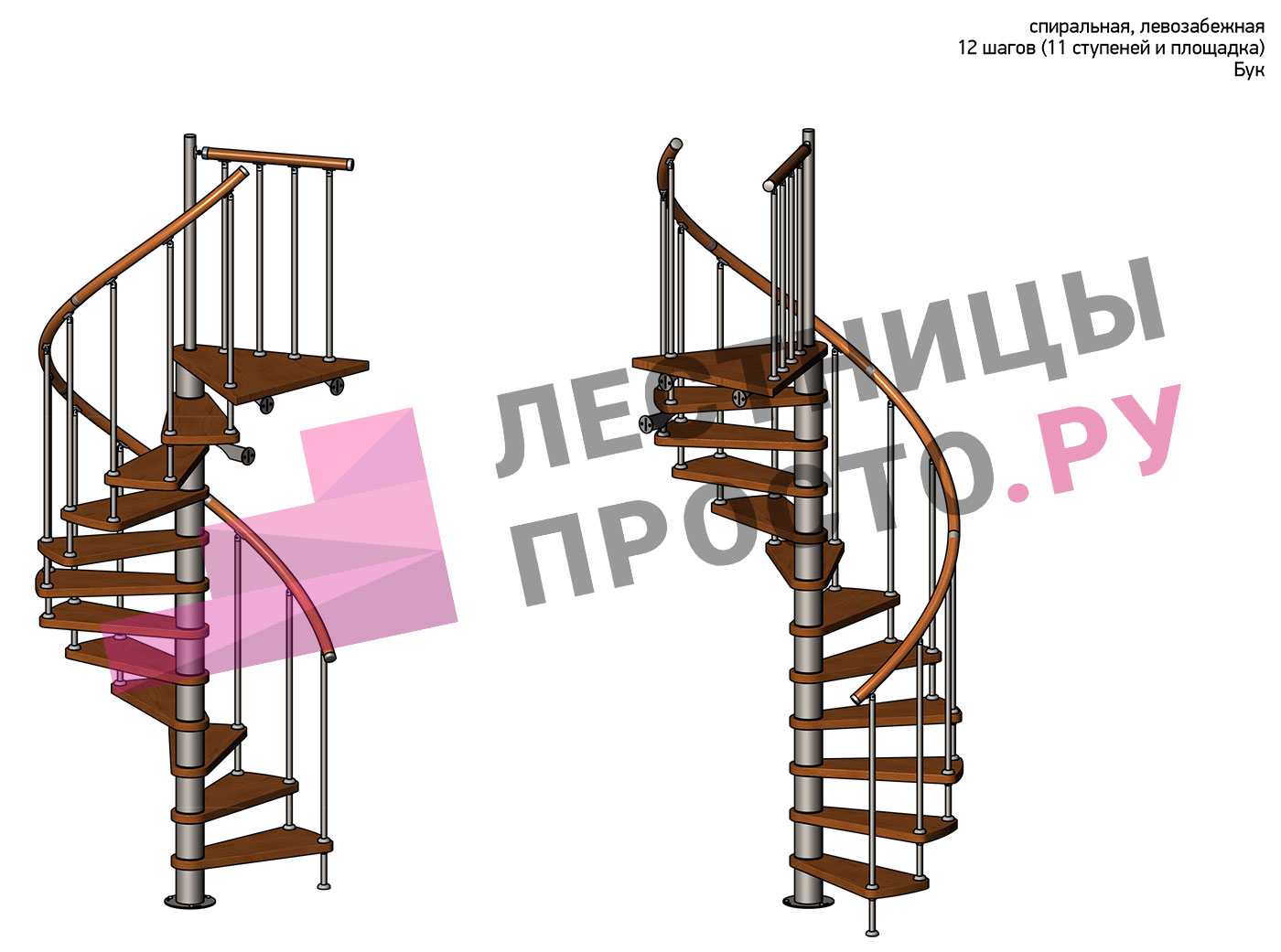 Винтовая лестница Prosto Spiral Black D140см, h260.5-304.6 см, бук