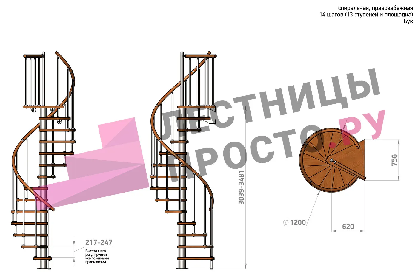 Решение об ориентации поворота принимается при сборке лестницы (комплект собирается и в правозабежную, и в левозабежную лестницу).