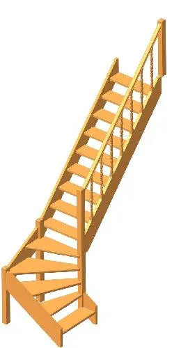 Лестница представлена в двух вариантах: с поворотом направо и с поворотом налево. Благодаря возможности регулировать высоту шага с помощью пластиковых вставок (входят в базовый комплект), высоту лестницы можно варьировать в пределах от 2860 до 3090 мм. Кроме того, купив дополнительную секцию для этой лестницы, можно поднять высоту до 3320 мм. Поручень изготовлен из массива бука в тон ступеням. Ступени и поручень покрыты износостойким защитным лаком.