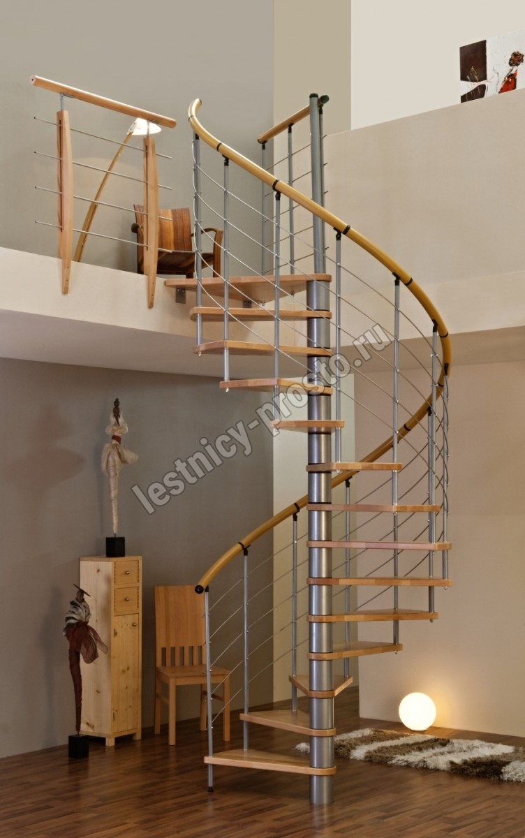 Винтовая лестница Venezia d140 см, серебро, дуб лакированный