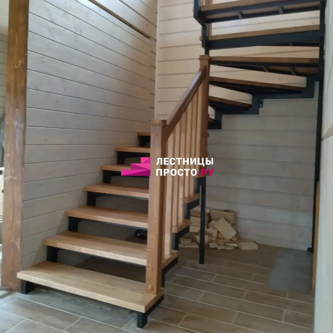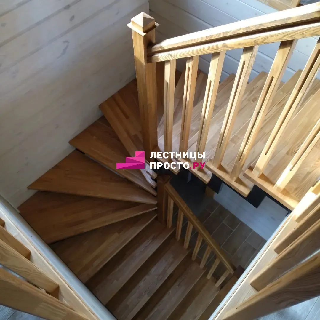 Лестница LP из сосны на второй этаж с поворотом на 180 градусов