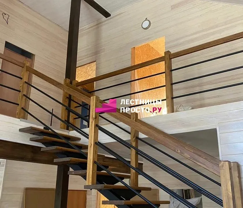 Металлическая лестница с дубовыми ступенями и ограждением LP-1-20