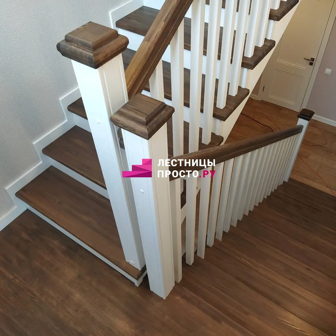 Лестница на второй этаж из лиственницы по индивидуальному проекту LP-000468