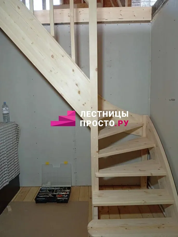 Лестница из сосны с поворотом и подступёнками для частного дома